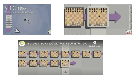 - Space and Time Travel Chess: I thought of this like quite a while ago, but made the simple mistake of never actually trying to implement it. However, brave and courageous programmers have done something similar to Bill S. Preston’s and Ted “Theodore” Logan’s musical compositions which brought universal harmonic convergence, and actually programmed such a marvel Time travel involves a Highlander like operation in which pieces can be sent forward or backwards in time, appearing (or ostensibly disappearing) as the game scrolls through subsequent horizons in time. Descriptions are available on wiki and on youtube